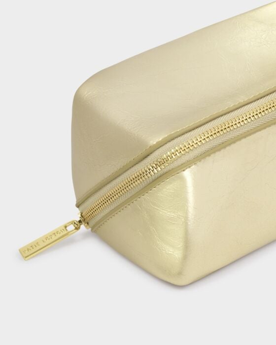 Designed with convenience in mind, our Fold-Out Mirror Makeup Bag in Gold features a built-in pull-out mirror for easy touch-ups on the go. Its compact fold-out silhouette is perfectly sized to hold all your beauty must-haves, while signature charm tassel detailing adds a luxe finishing touch.