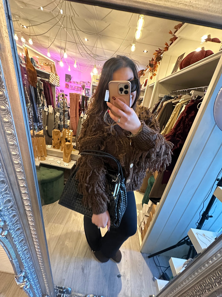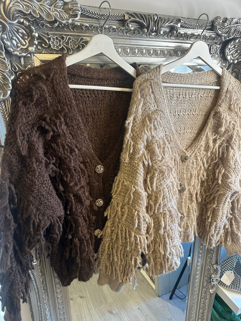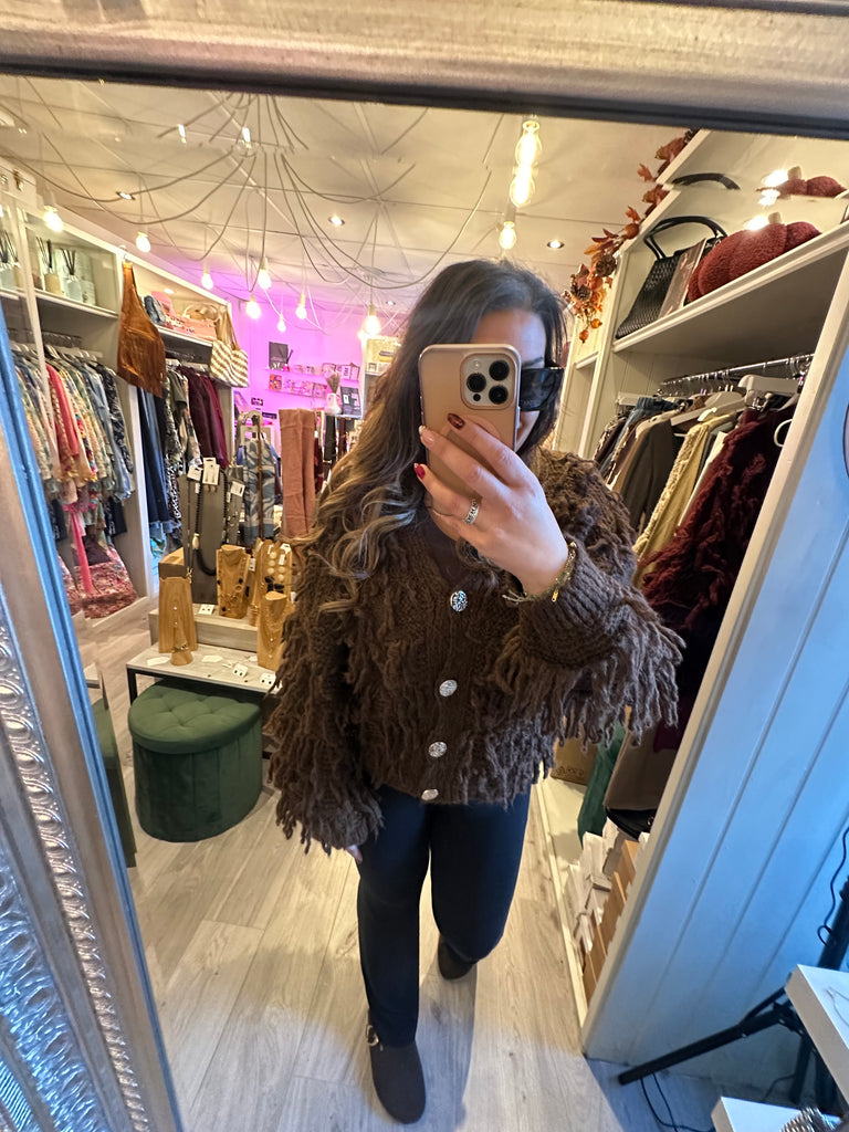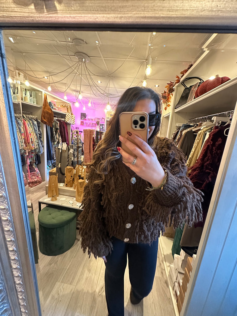 Gold button shaggy cardigan - Brown