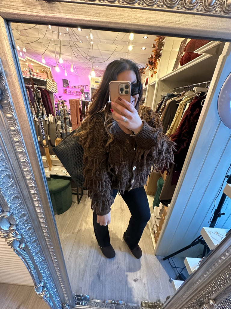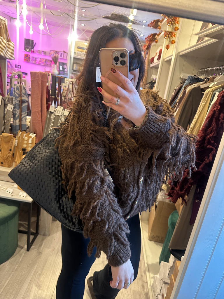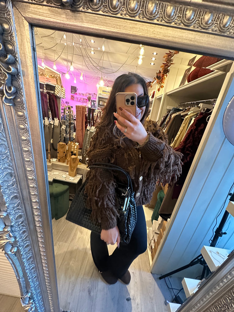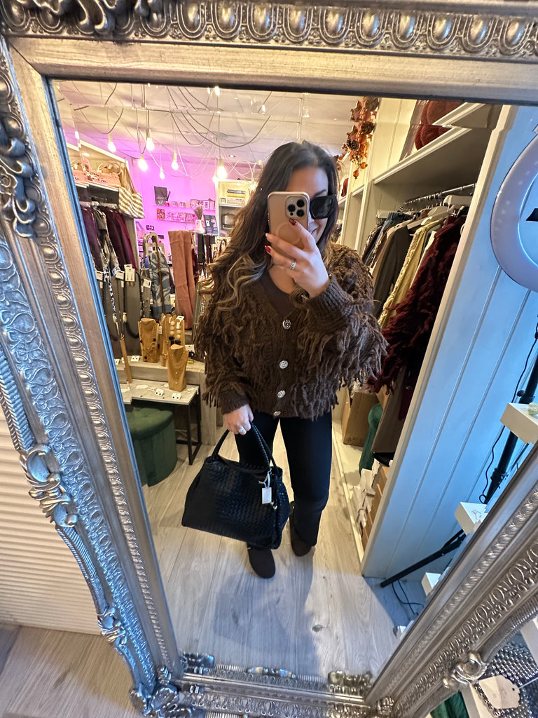 Gold button shaggy cardigan - Brown