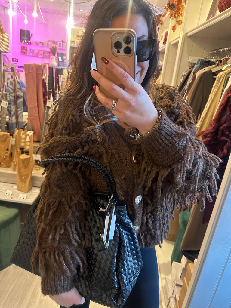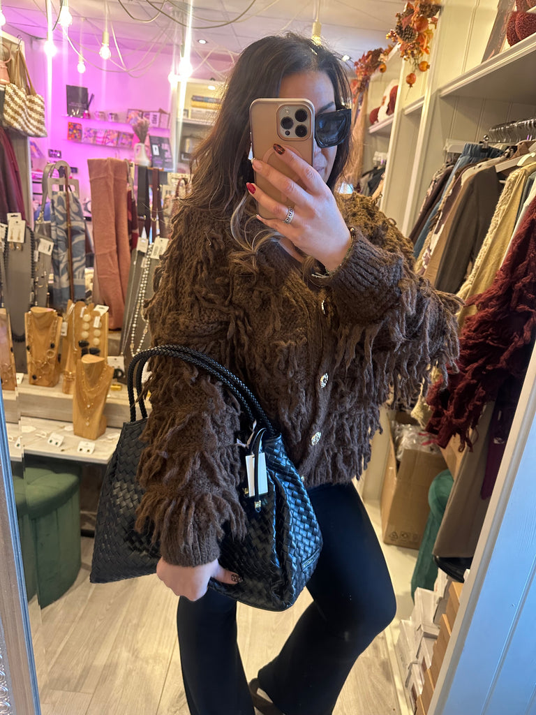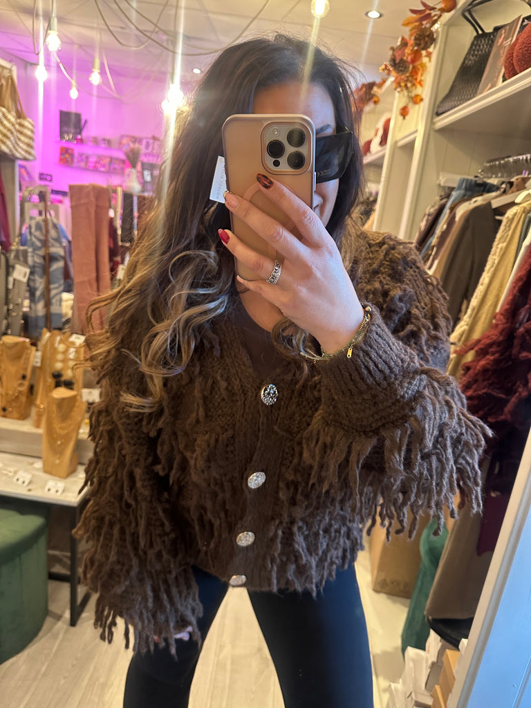 Gold button shaggy cardigan