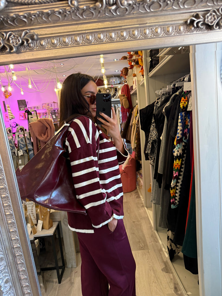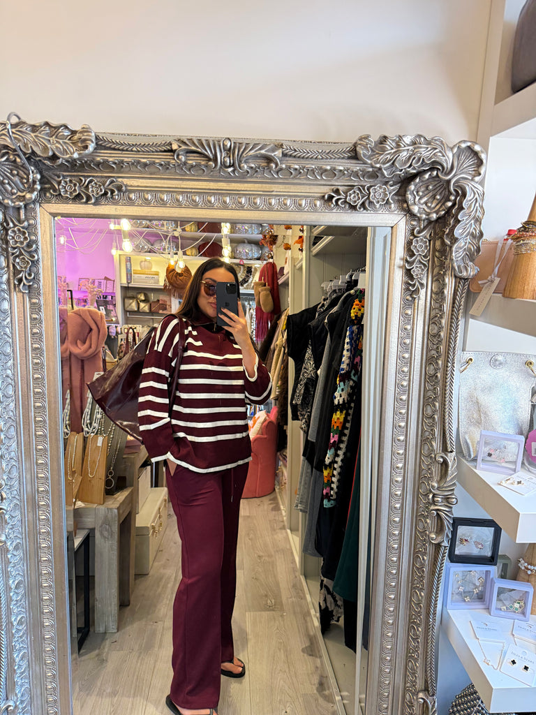Burgundy striped super soft quarter zip