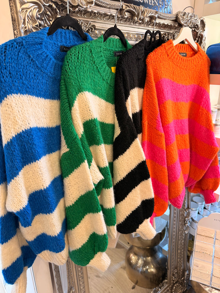 Kris Ana fluffy striped jumper - Pink/orange is backordered and will ship as soon as it is back in stock.
