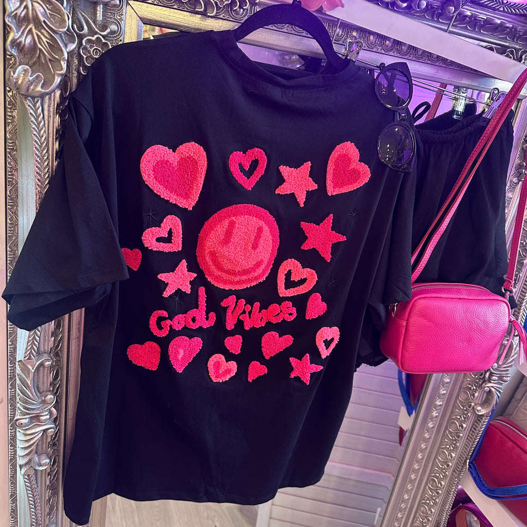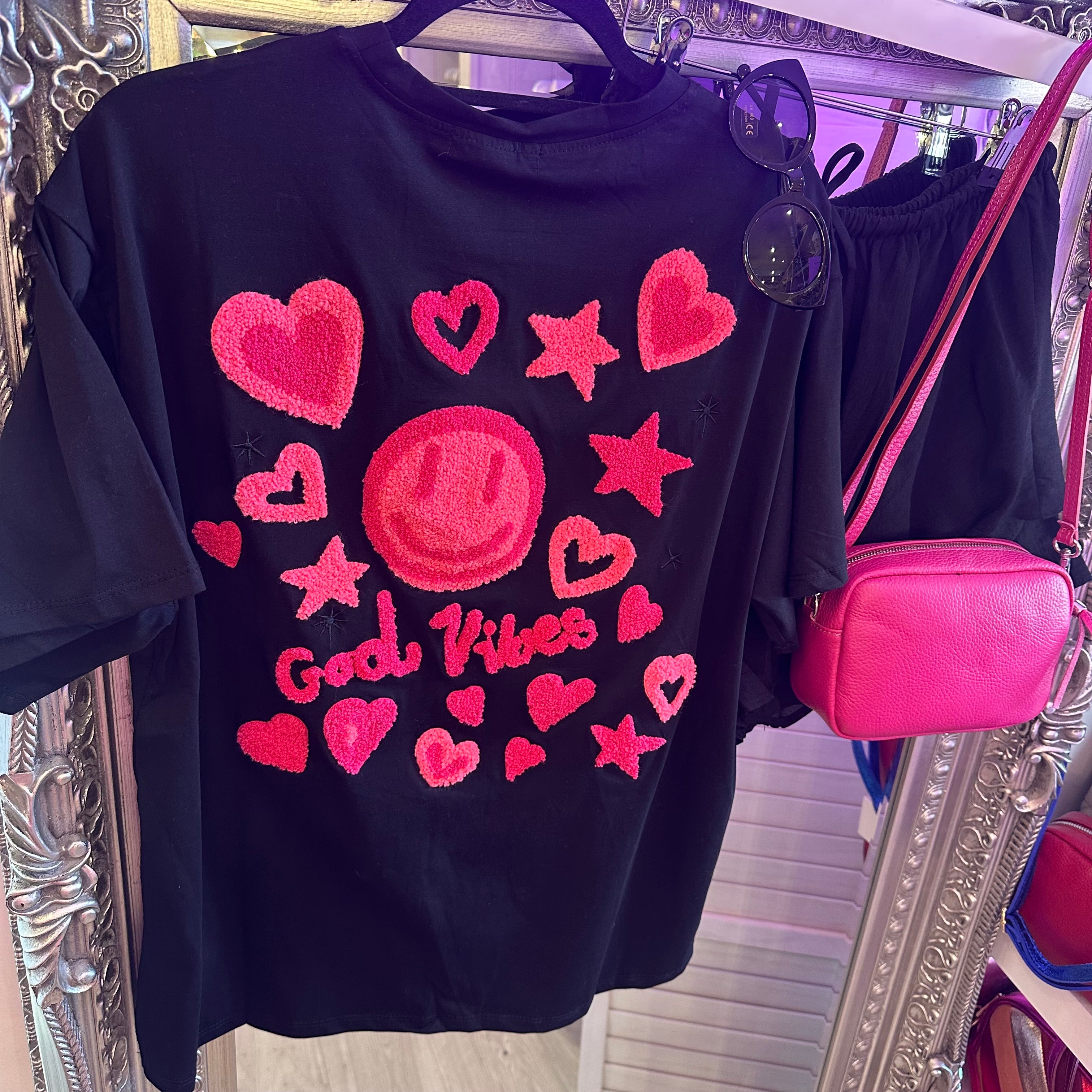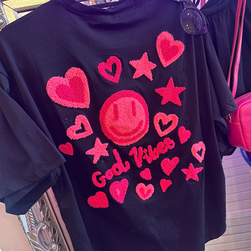 Good vibes pink embellished tee