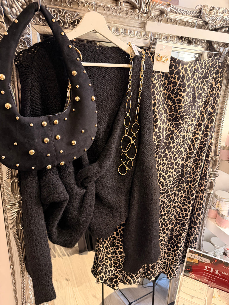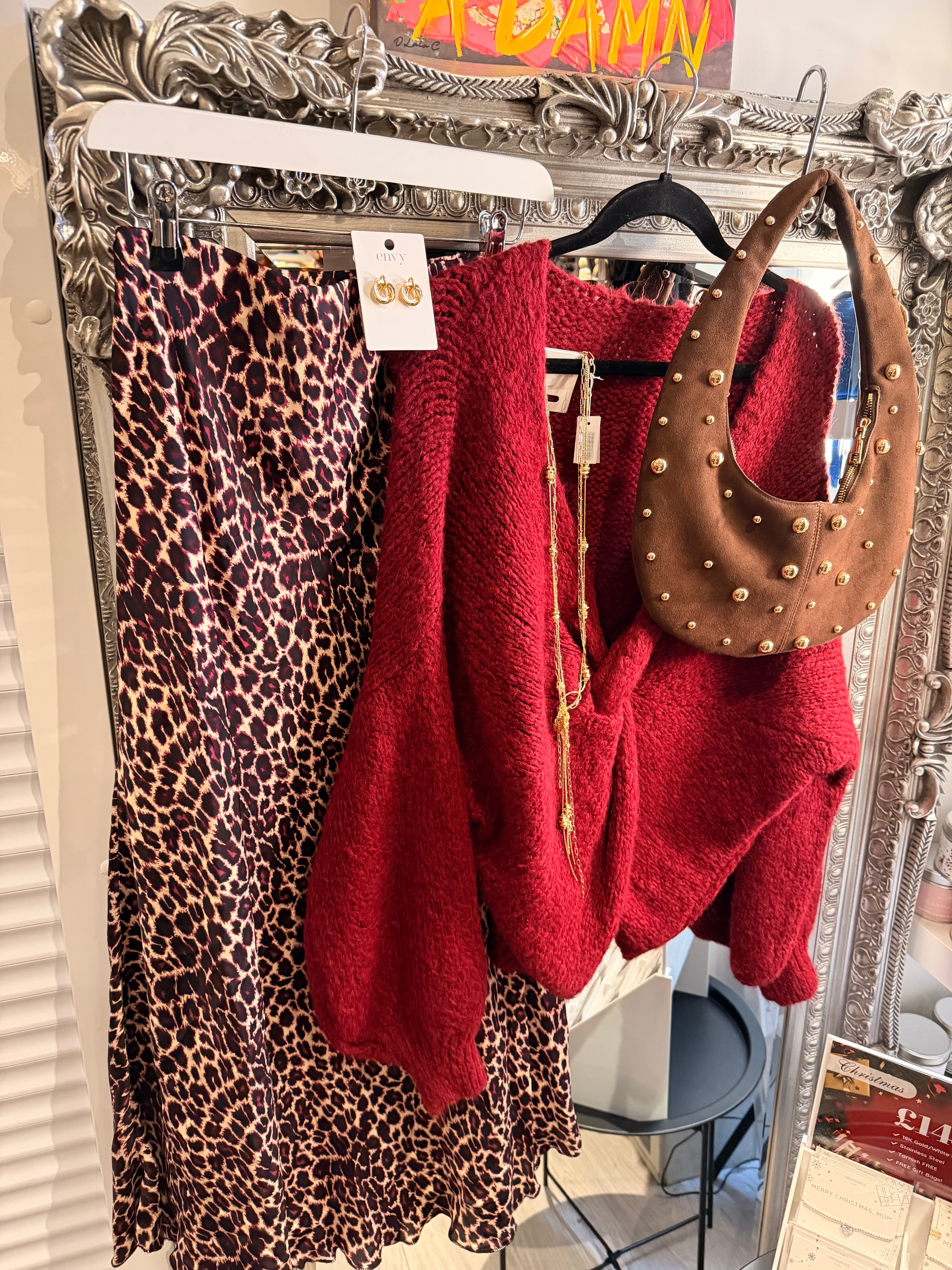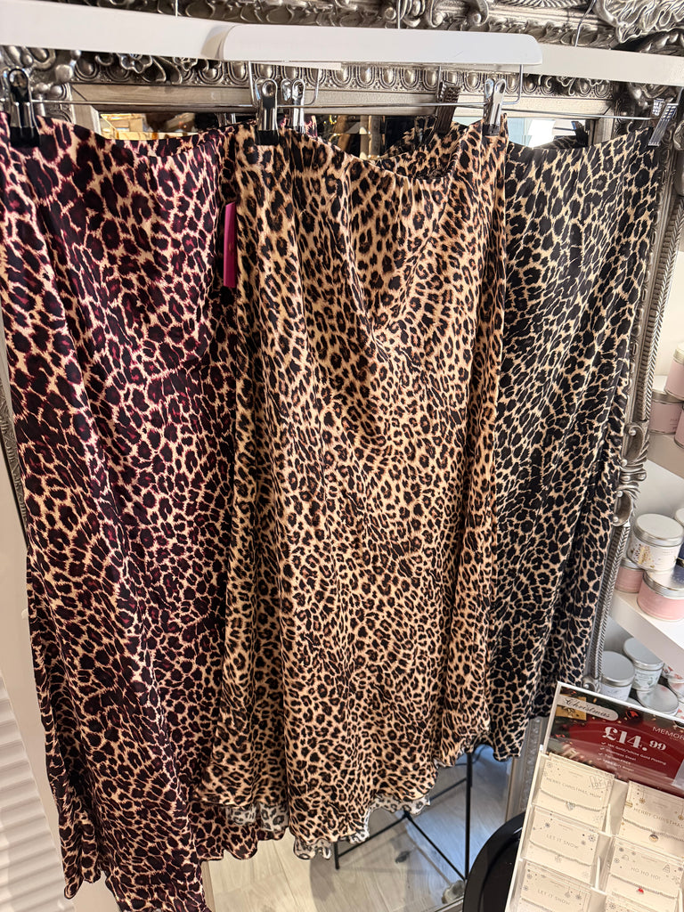 Leopard satin skirt - Wine is backordered and will ship as soon as it is back in stock.