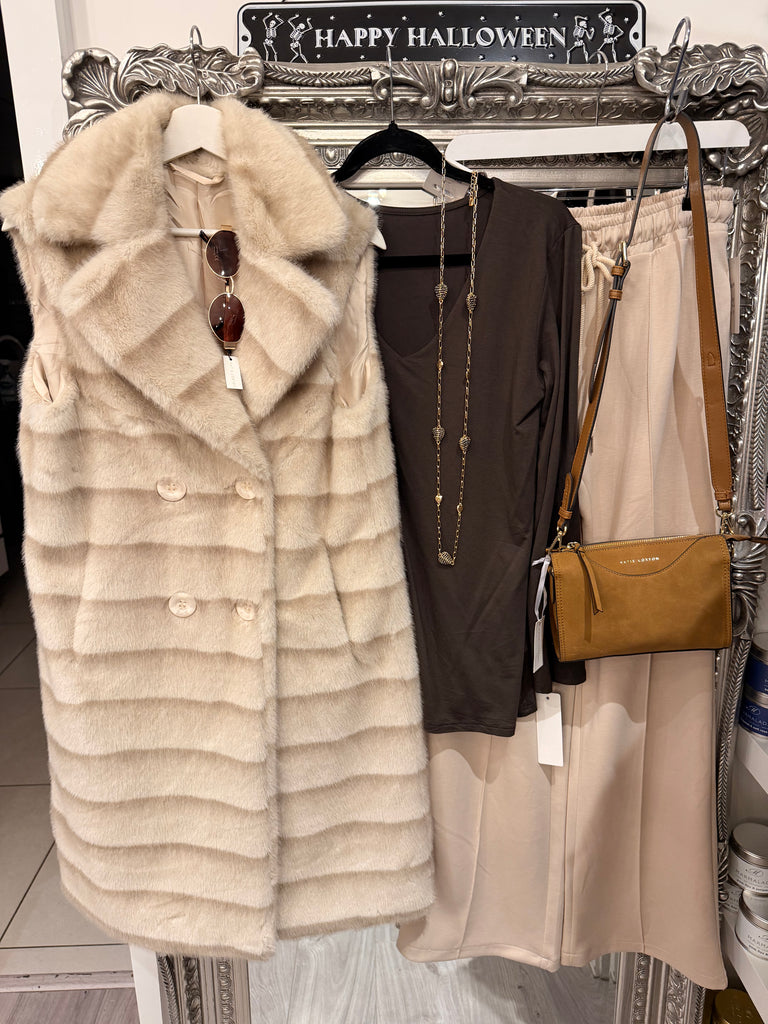 Sarah Tempest faux fur gilet is backordered and will ship as soon as it is back in stock.