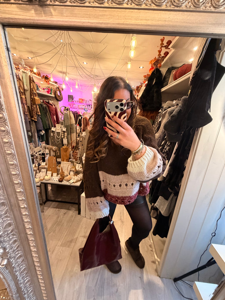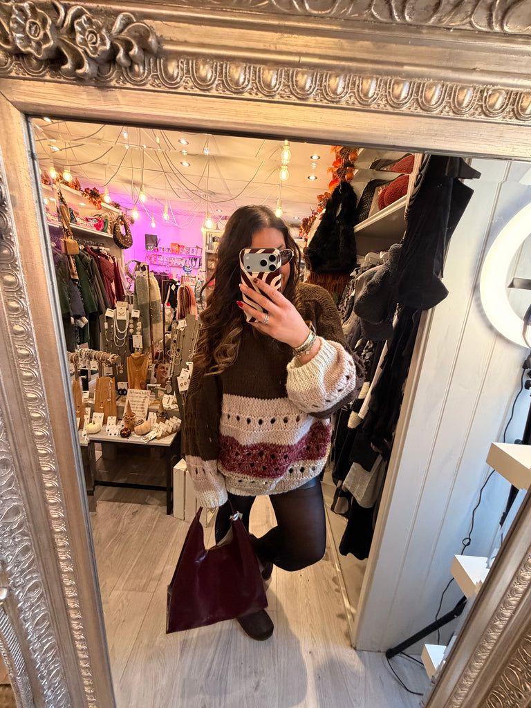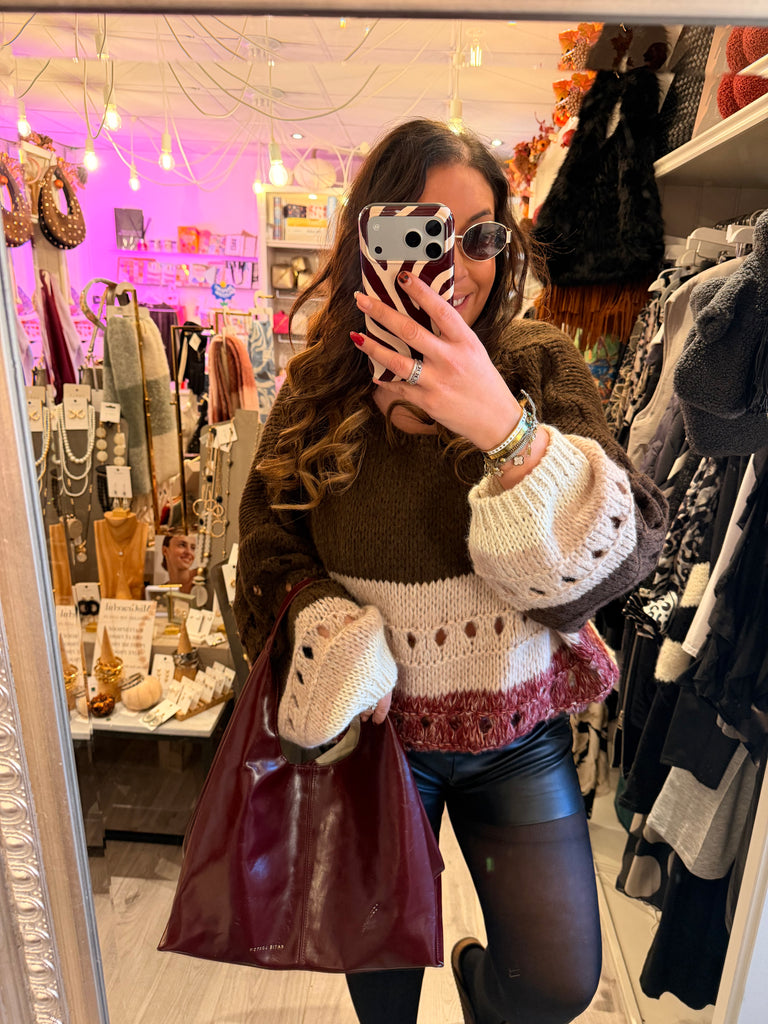 Sarah Tempest three tone jumper is backordered and will ship as soon as it is back in stock.