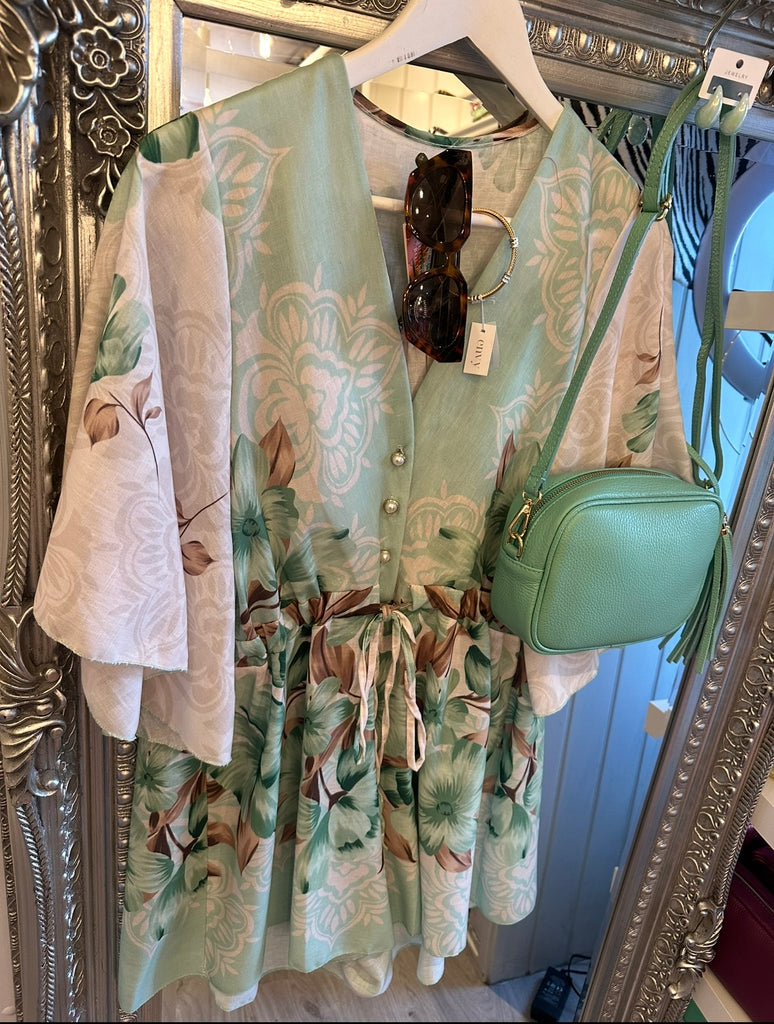 Boho Embroided Dress with Rope Detail Belt - Beige