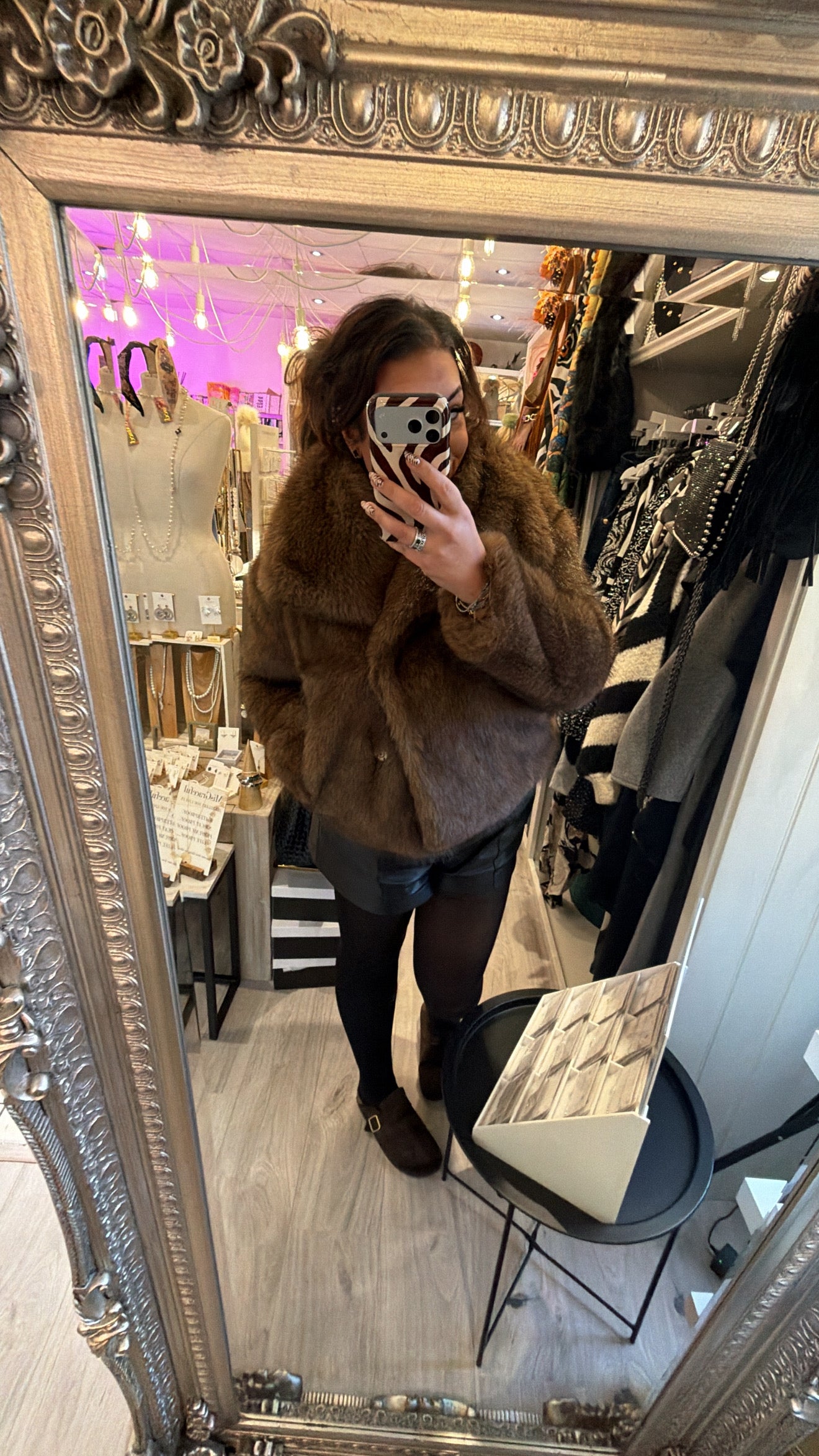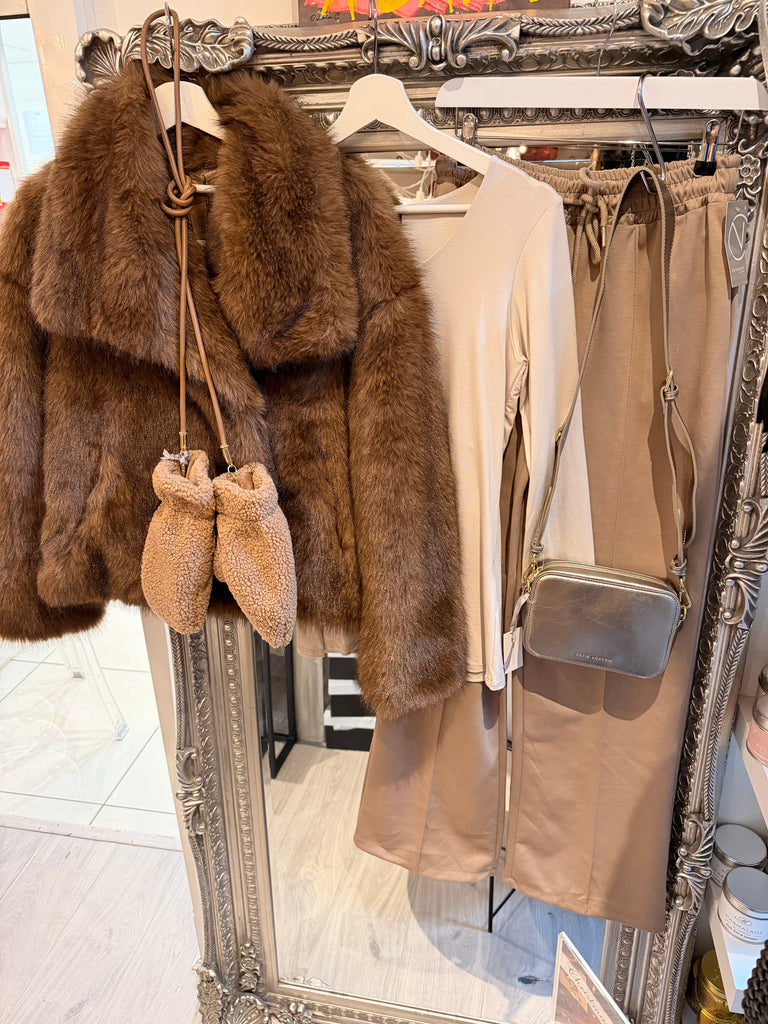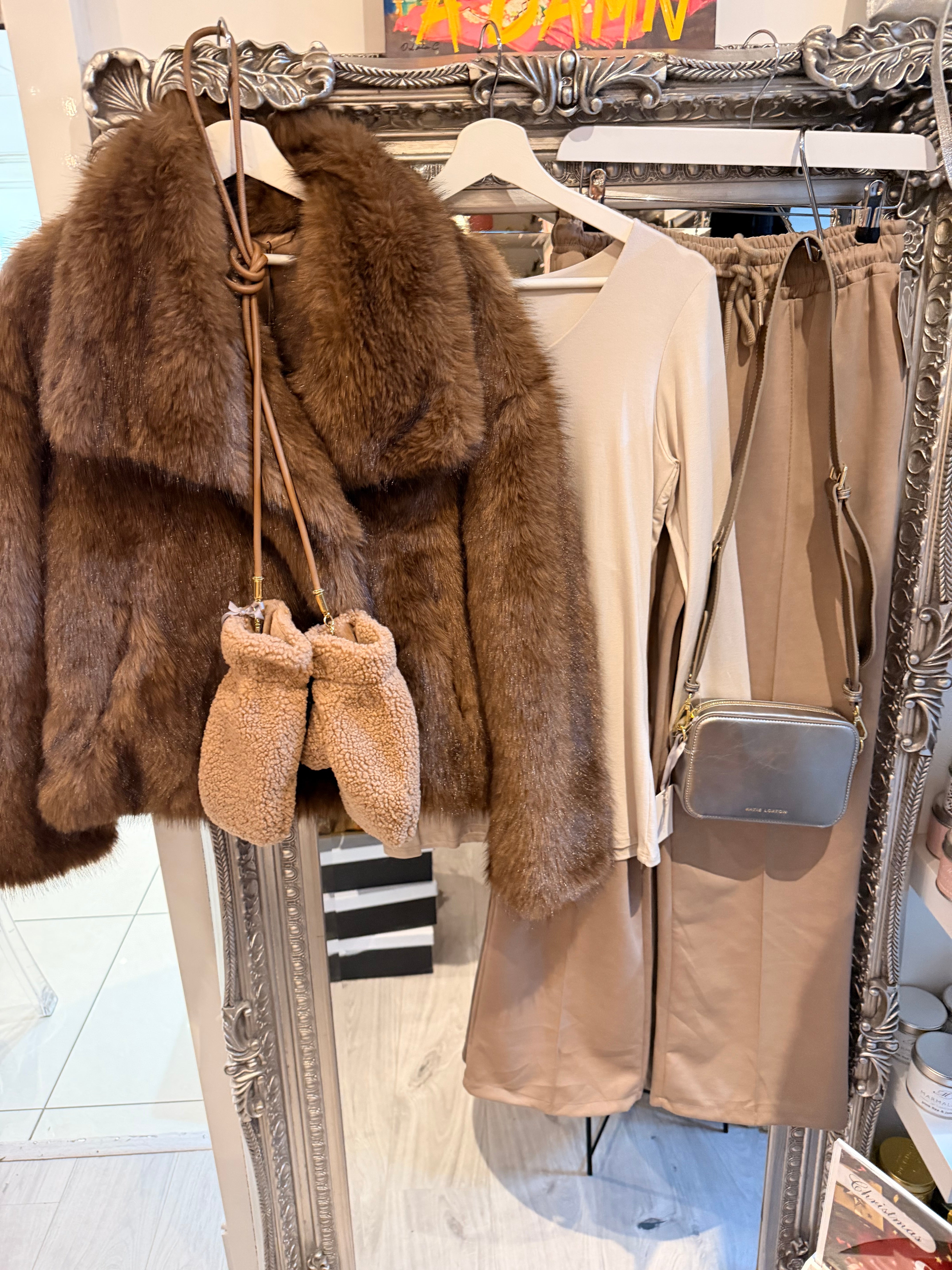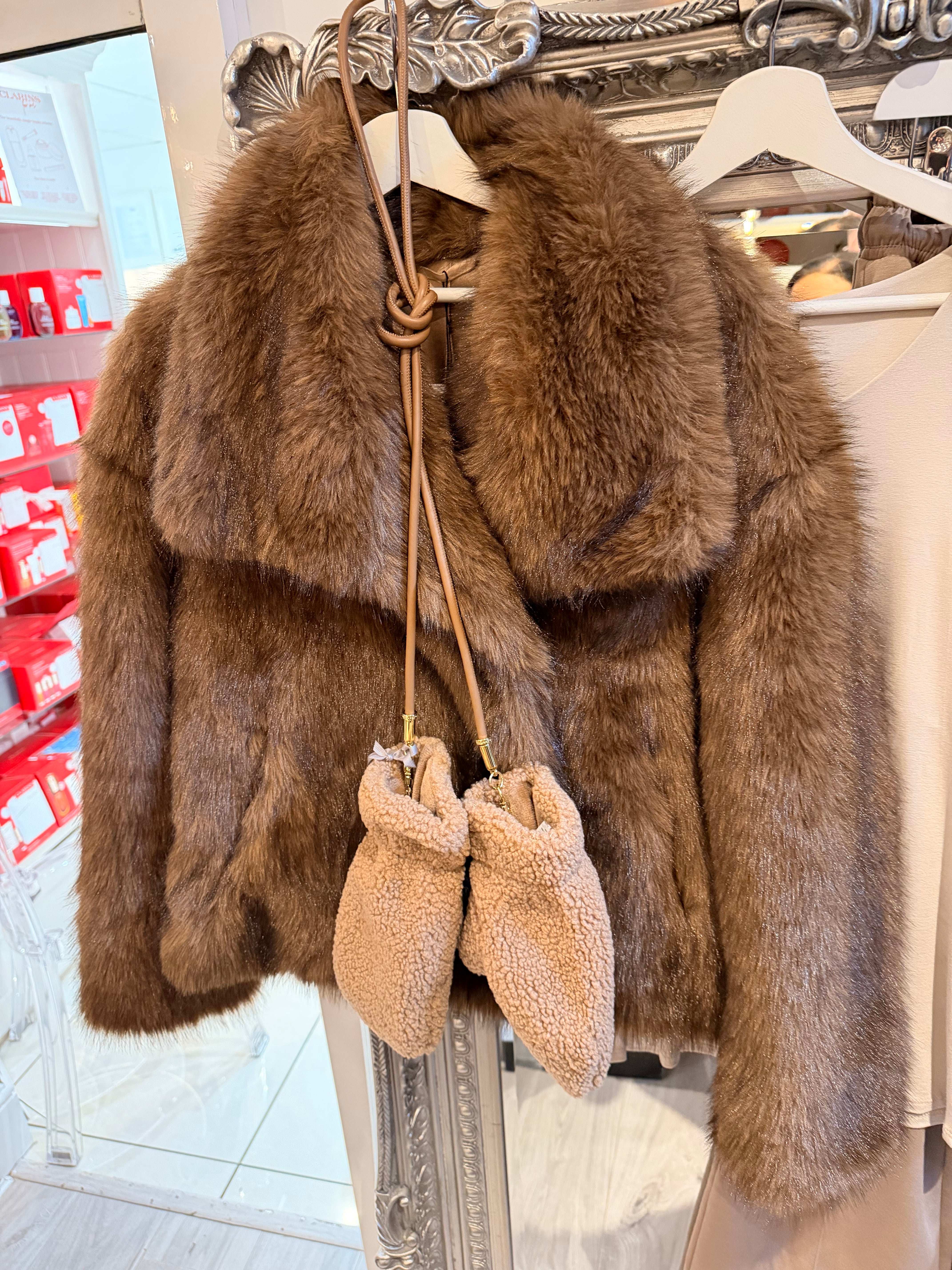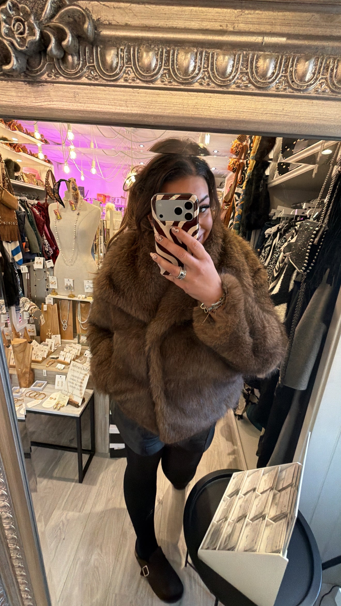 Kurt Muller Brown faux fur coat is backordered and will ship as soon as it is back in stock.