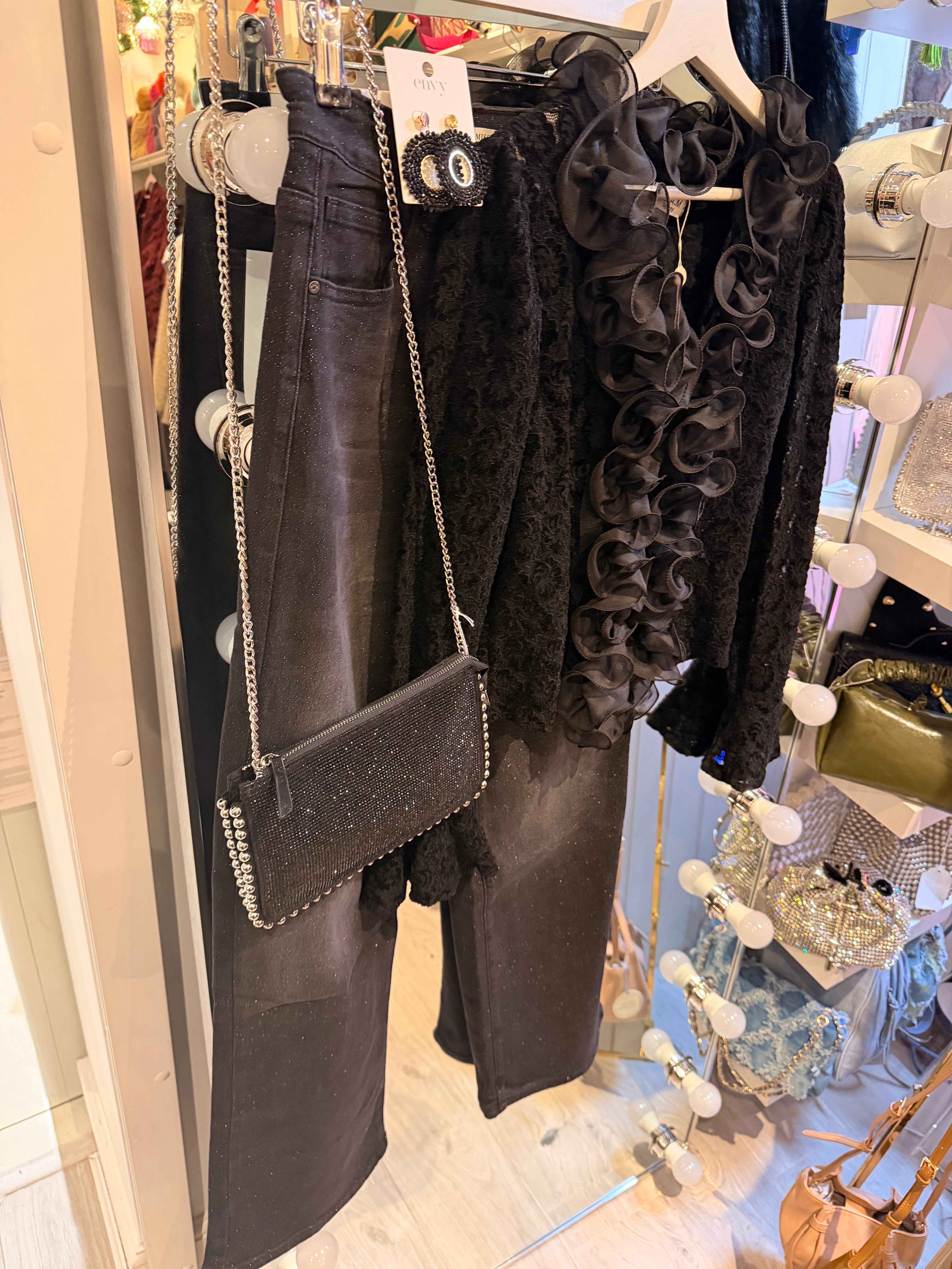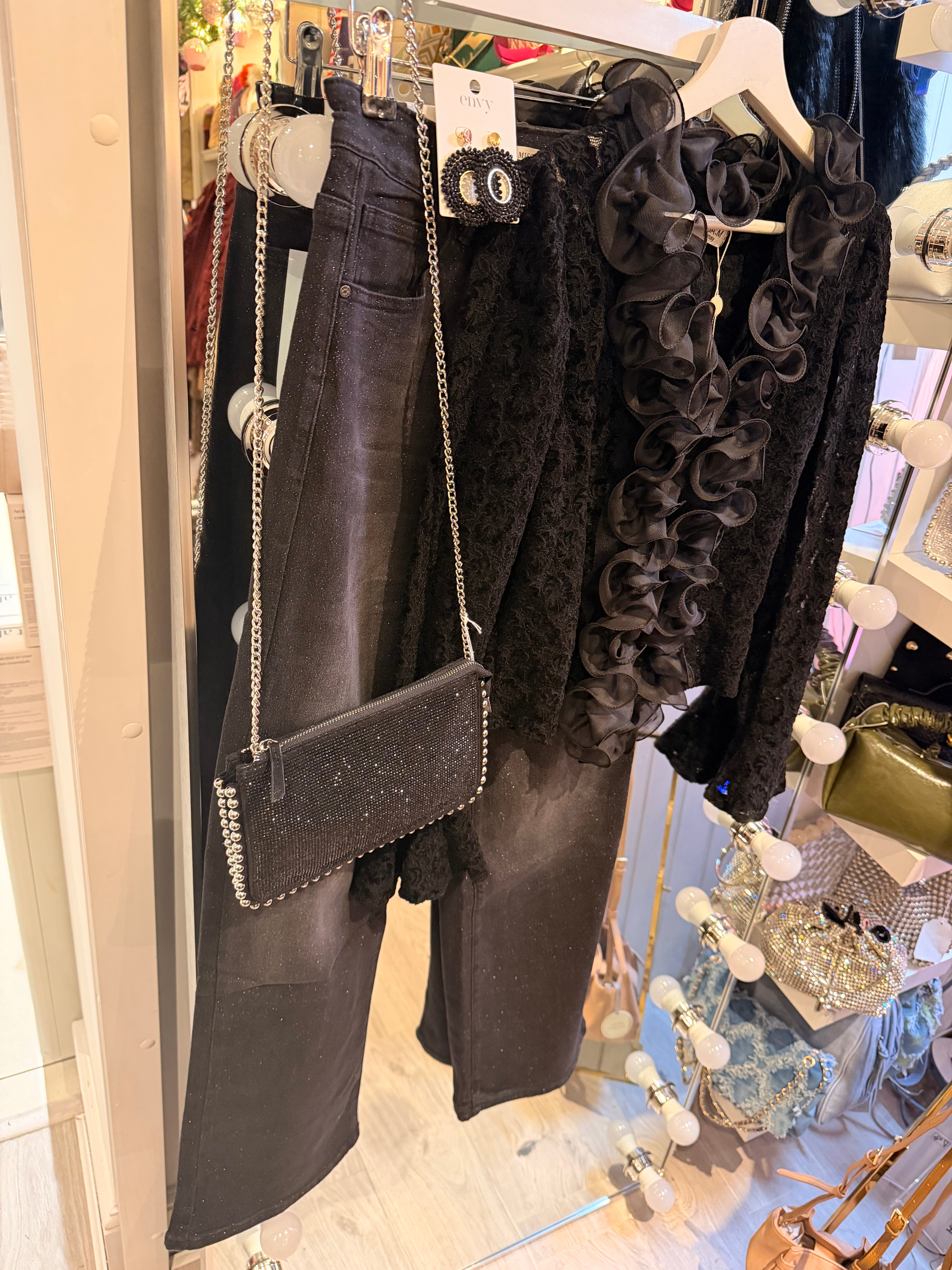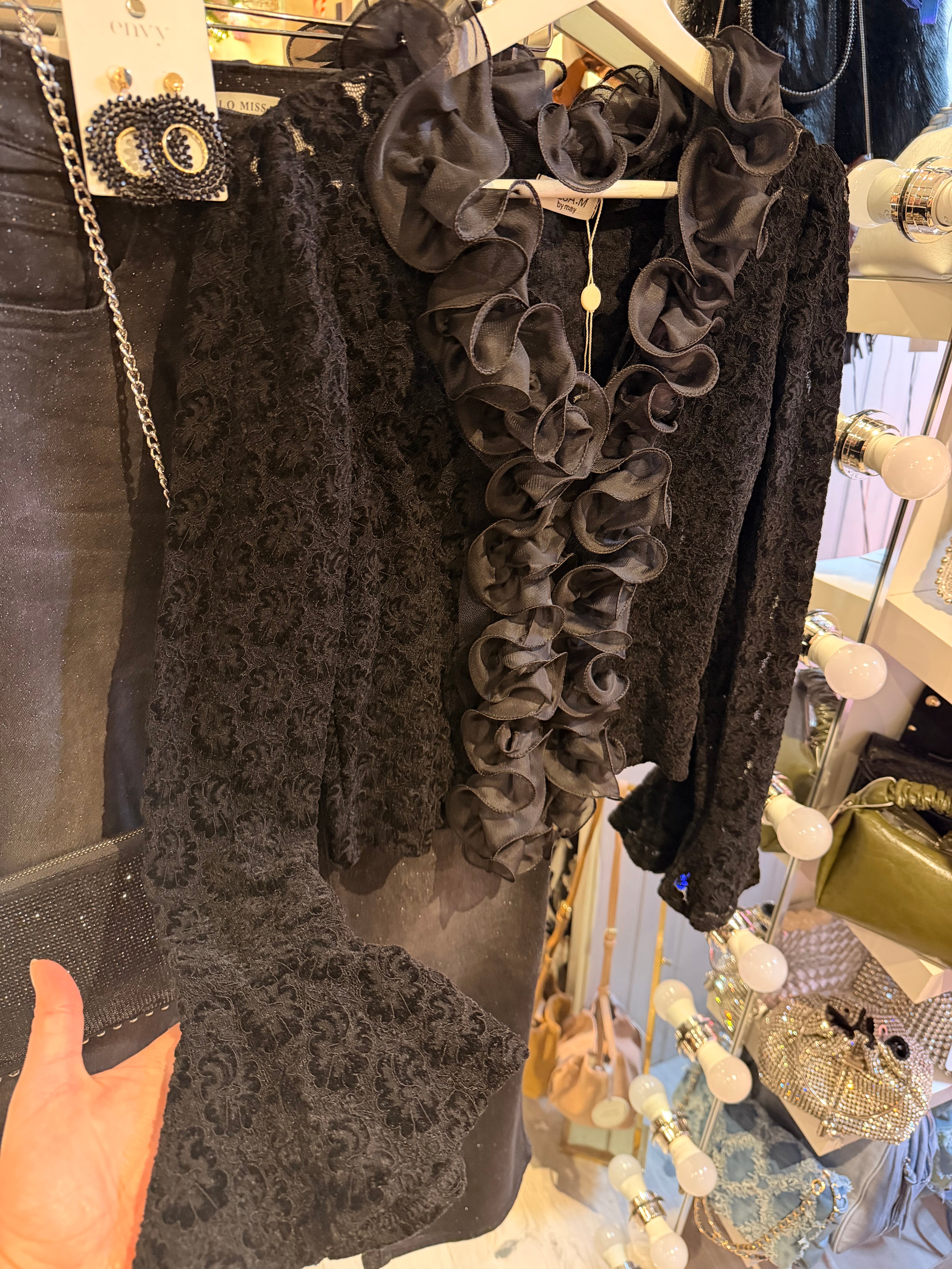 Black lace ruffle top