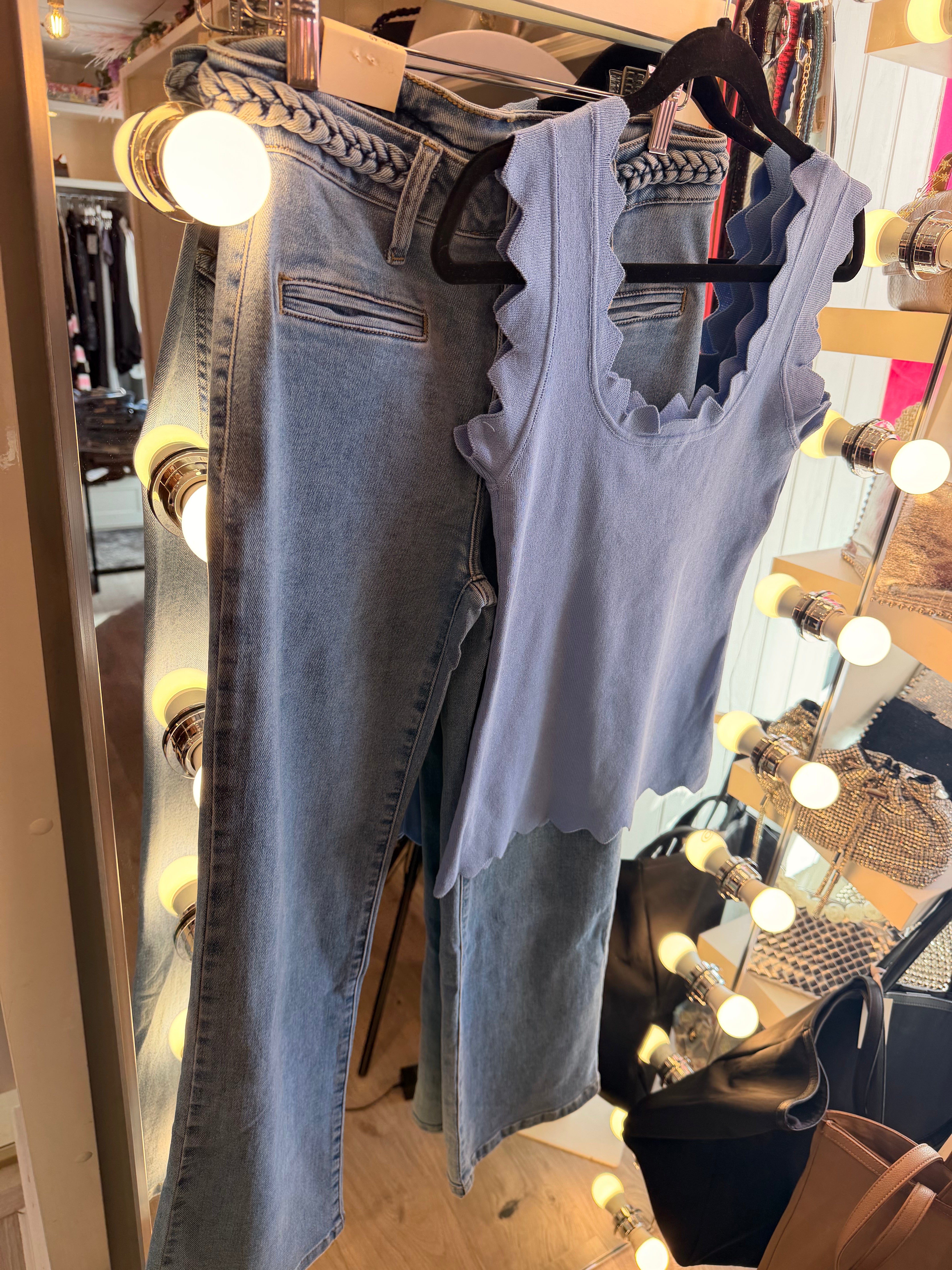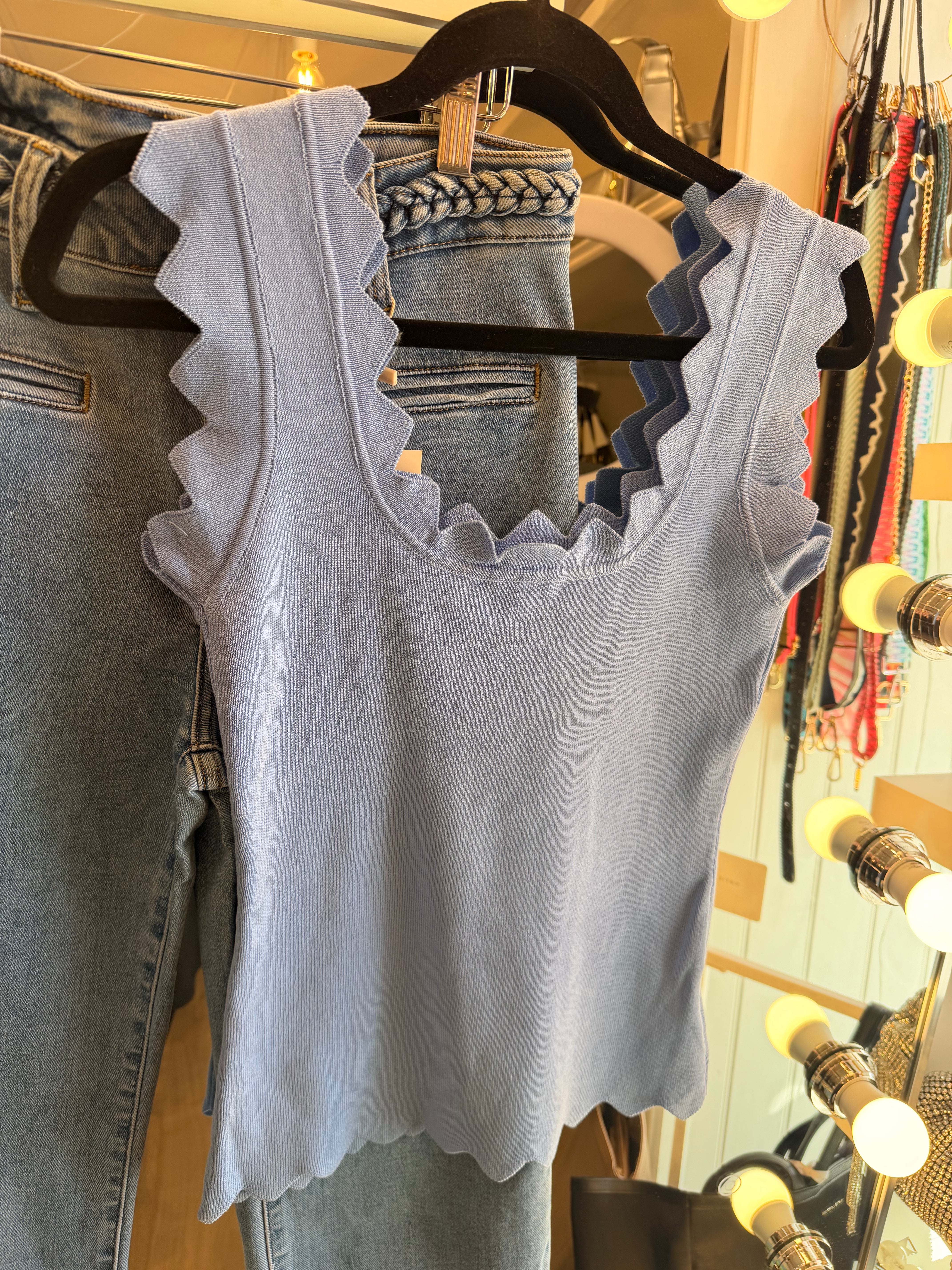 Blue scallop fine knit top
