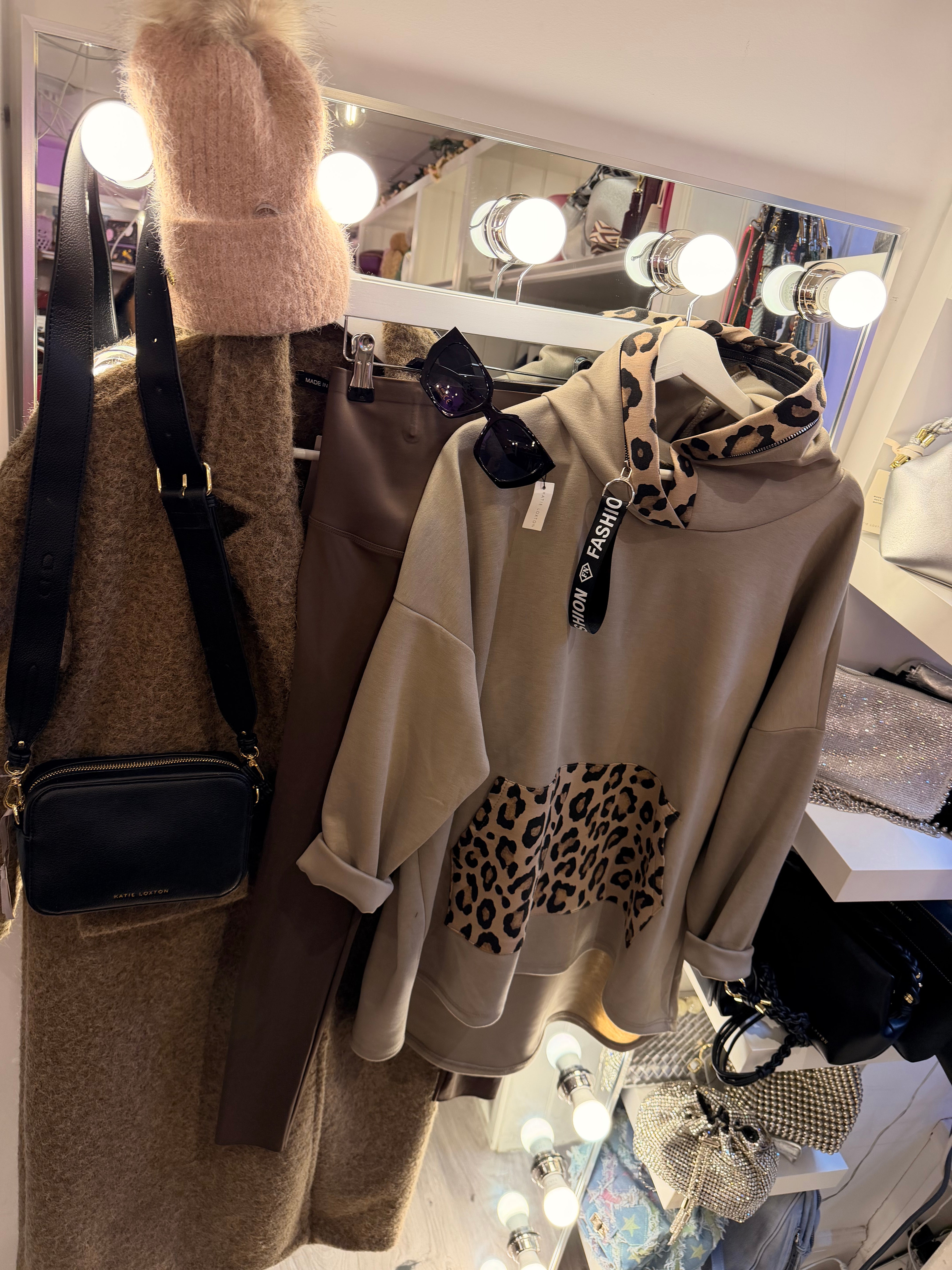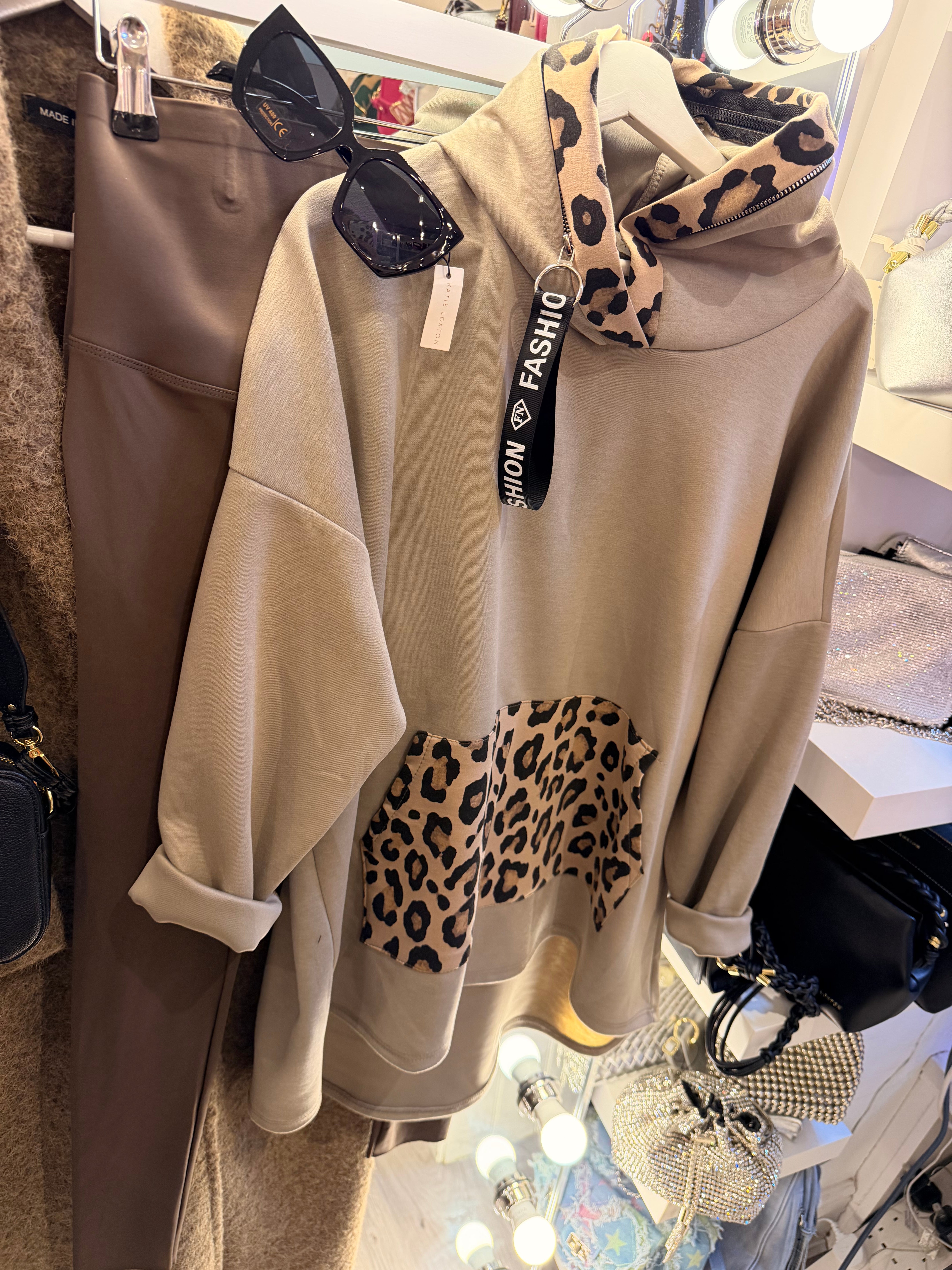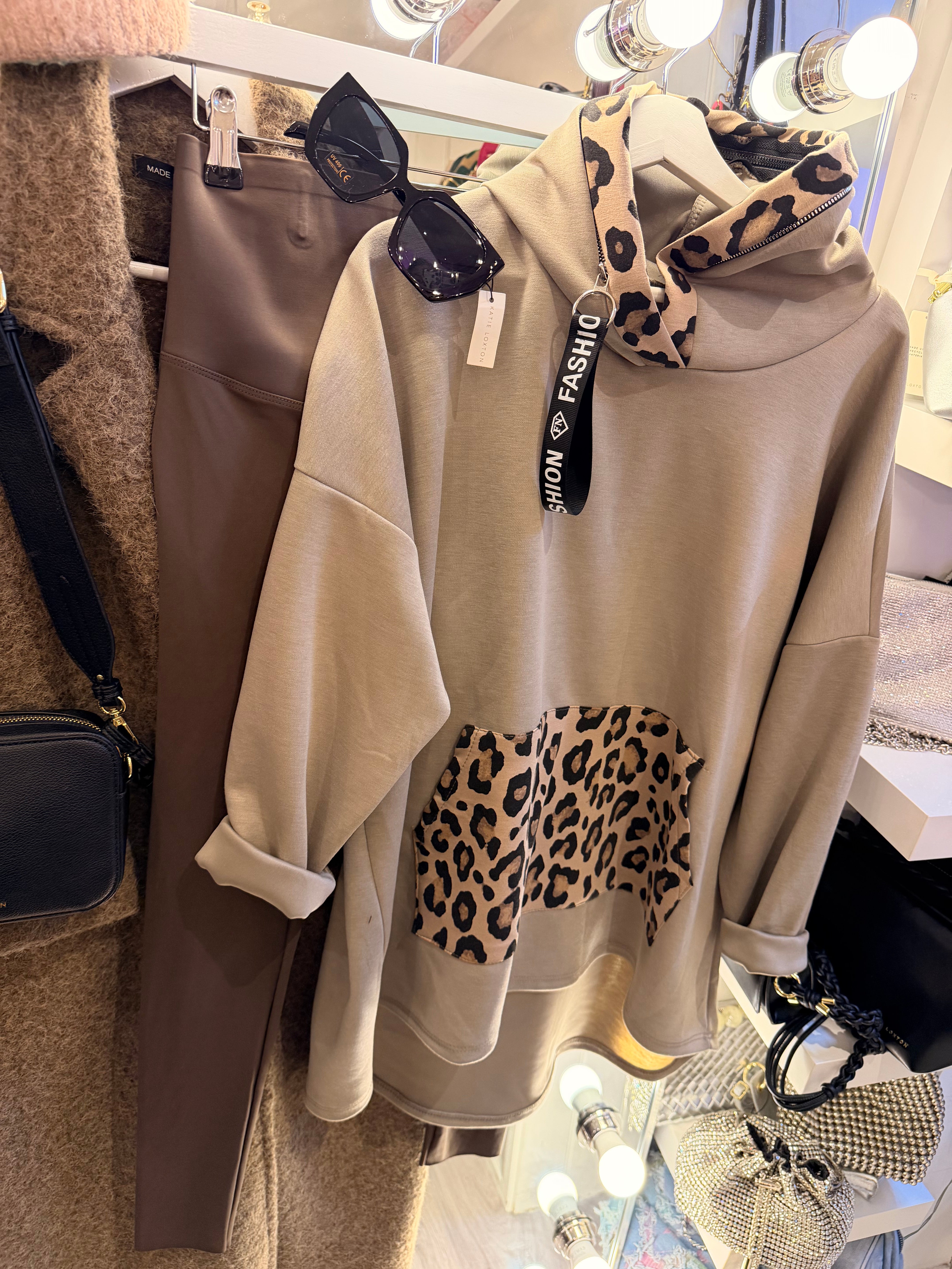 Leopard detail hoodie - Mocha Brown is backordered and will ship as soon as it is back in stock.