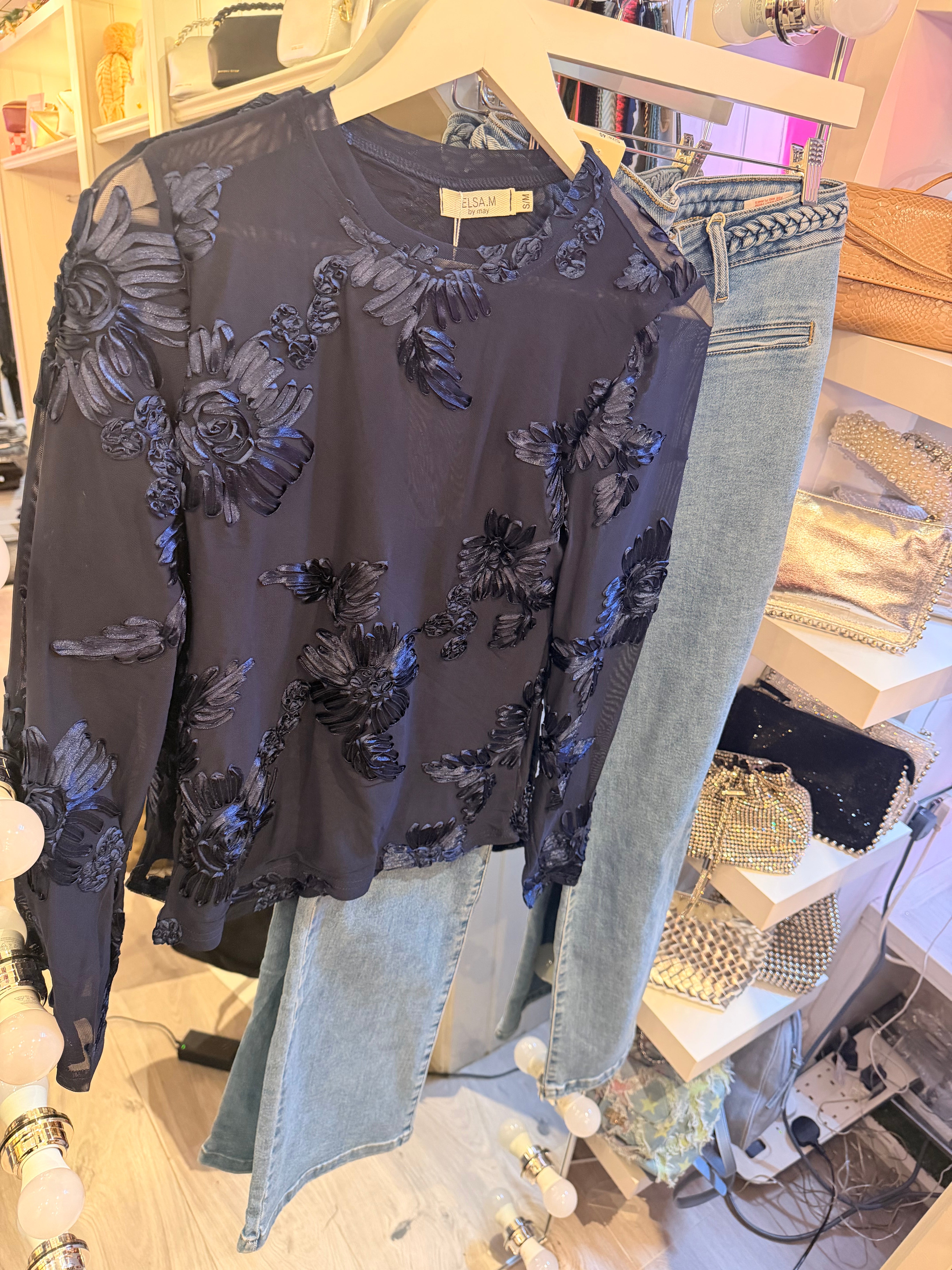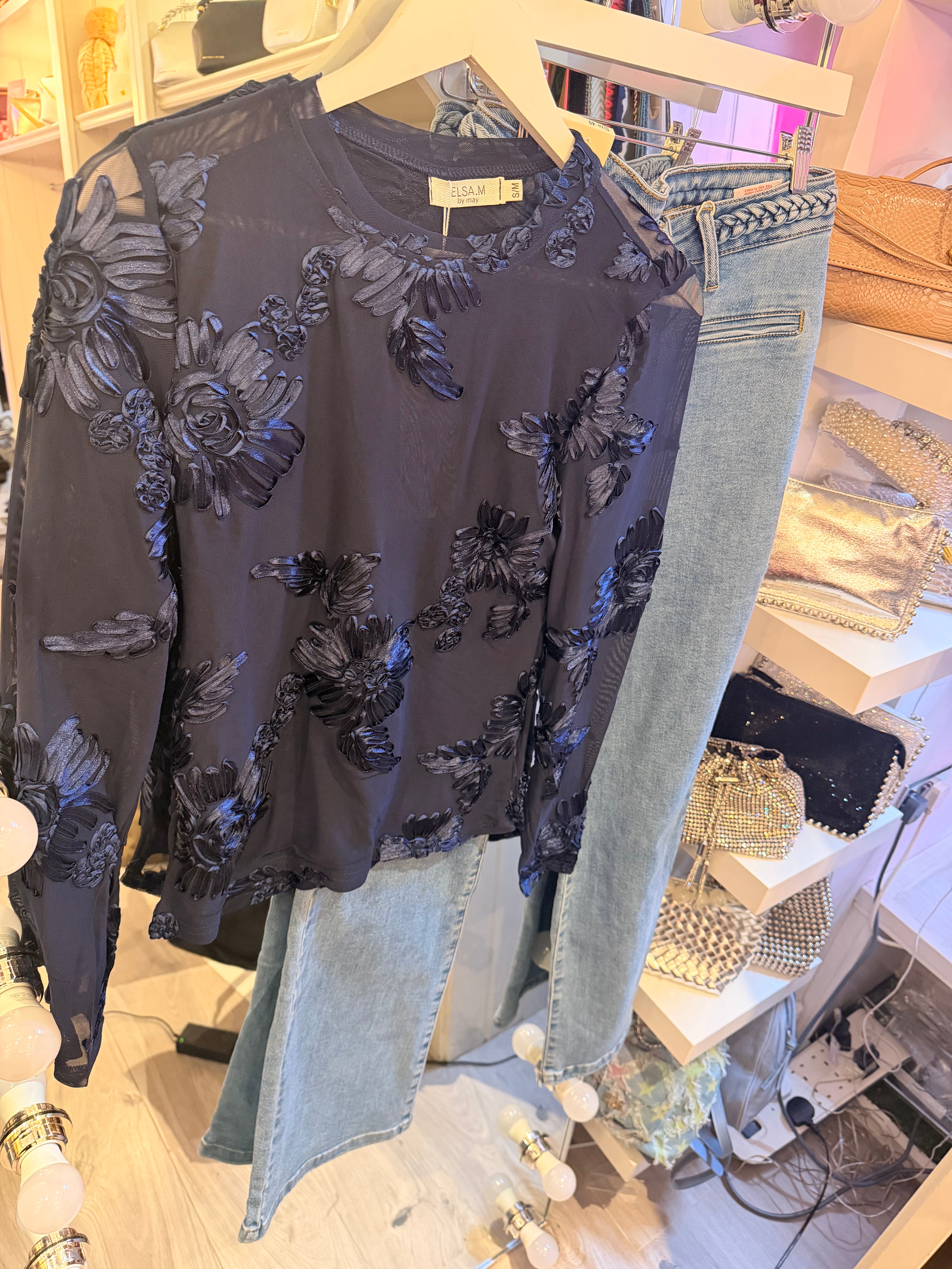 Navy Floral mesh top