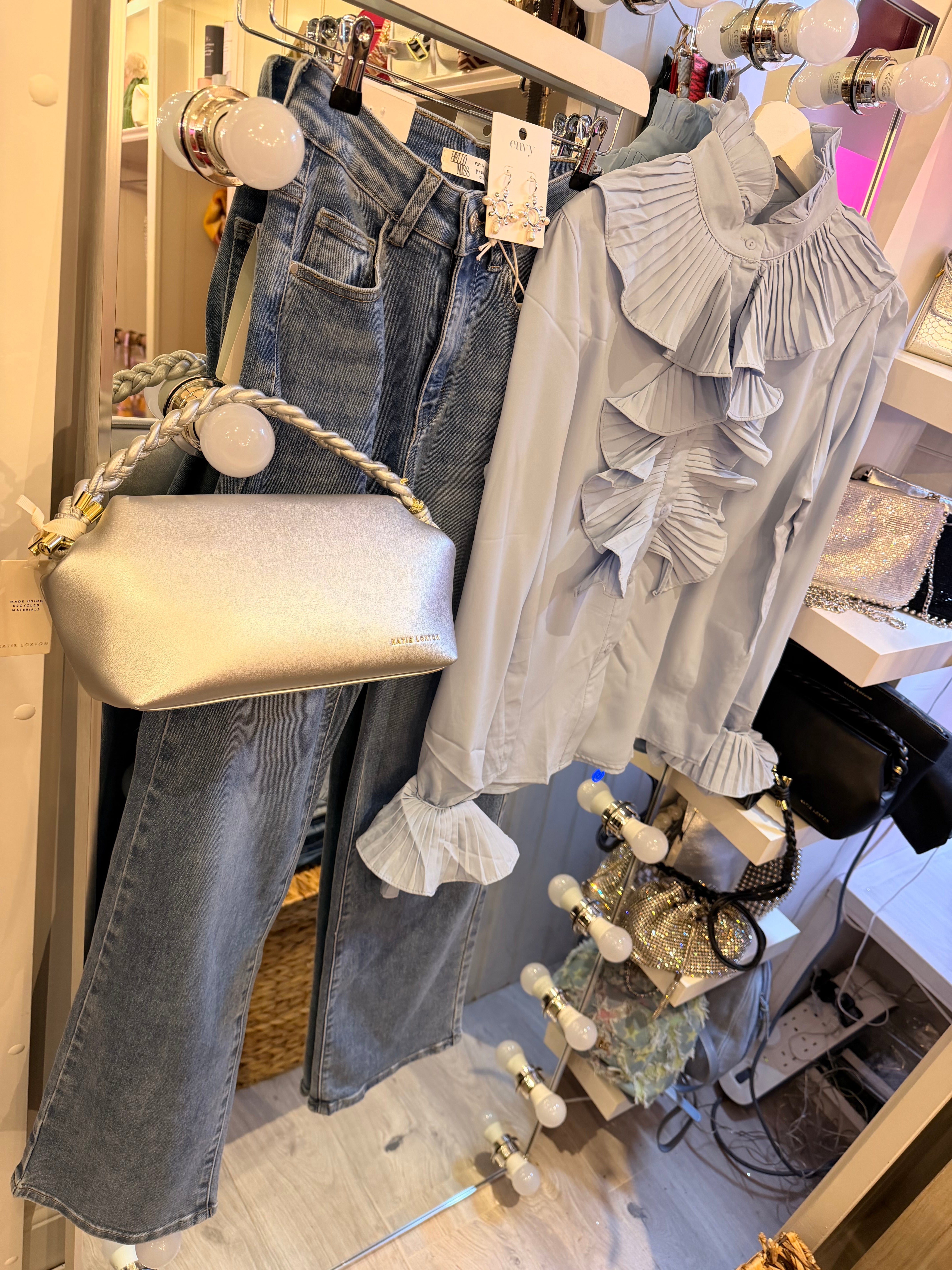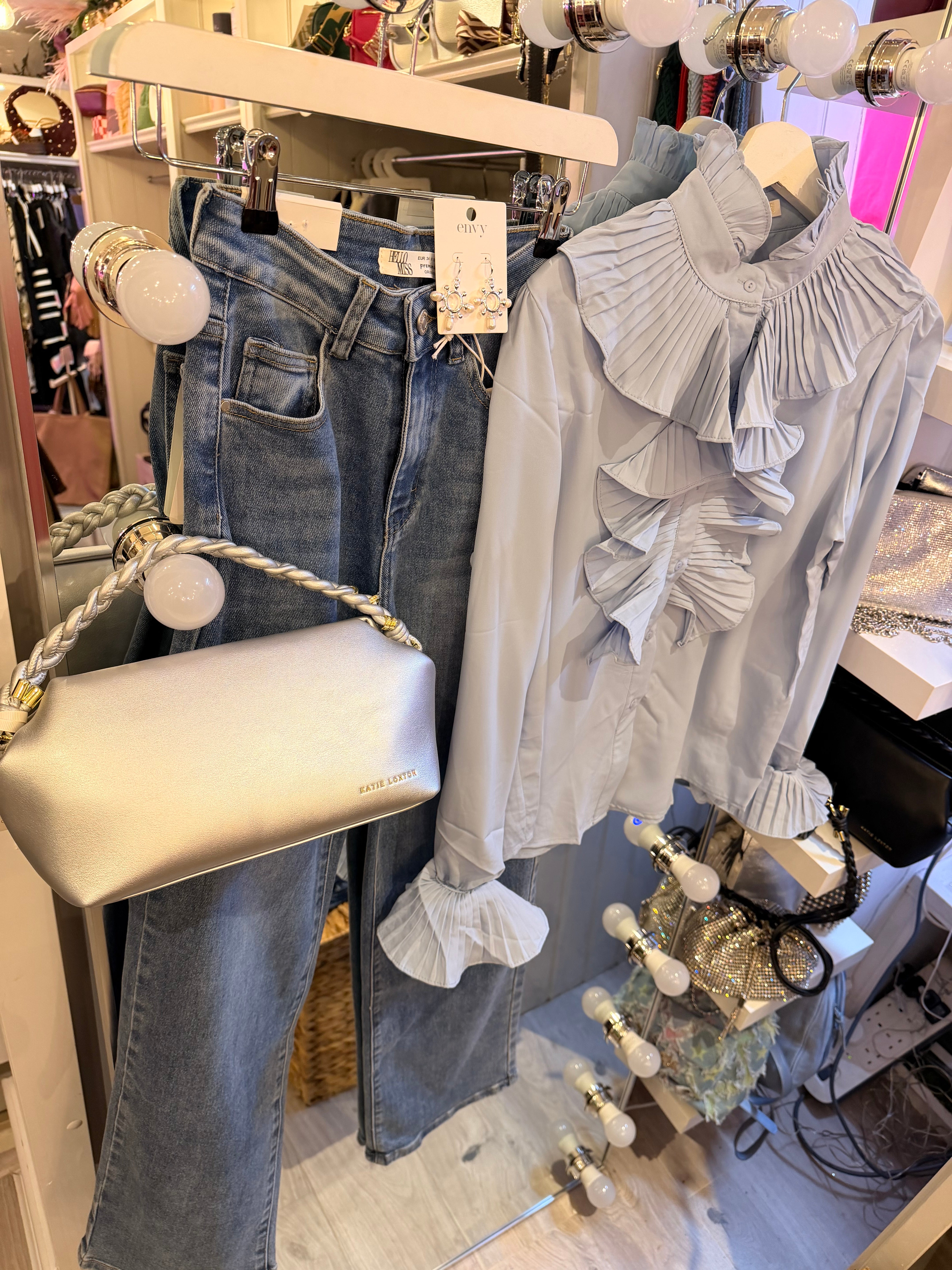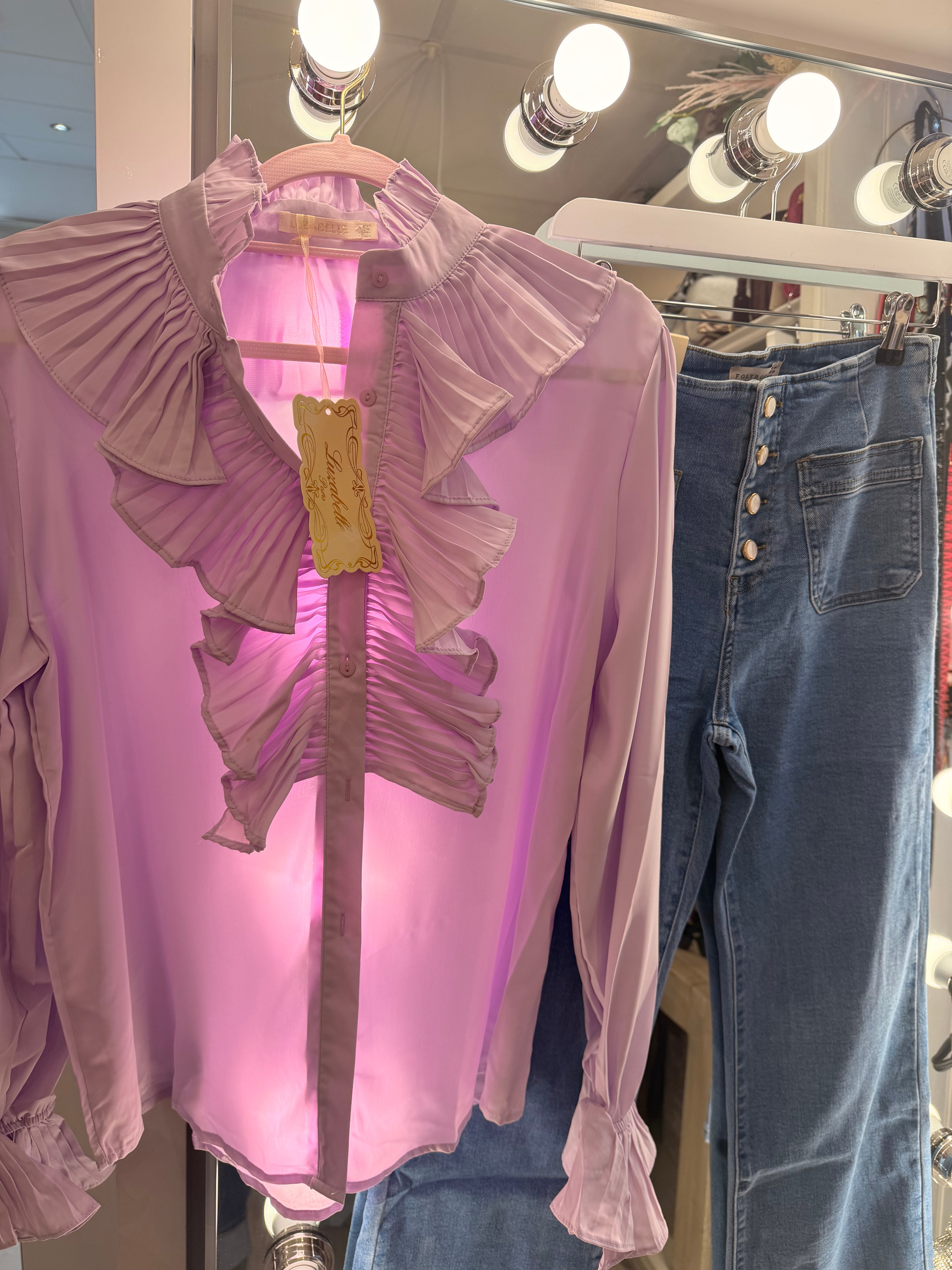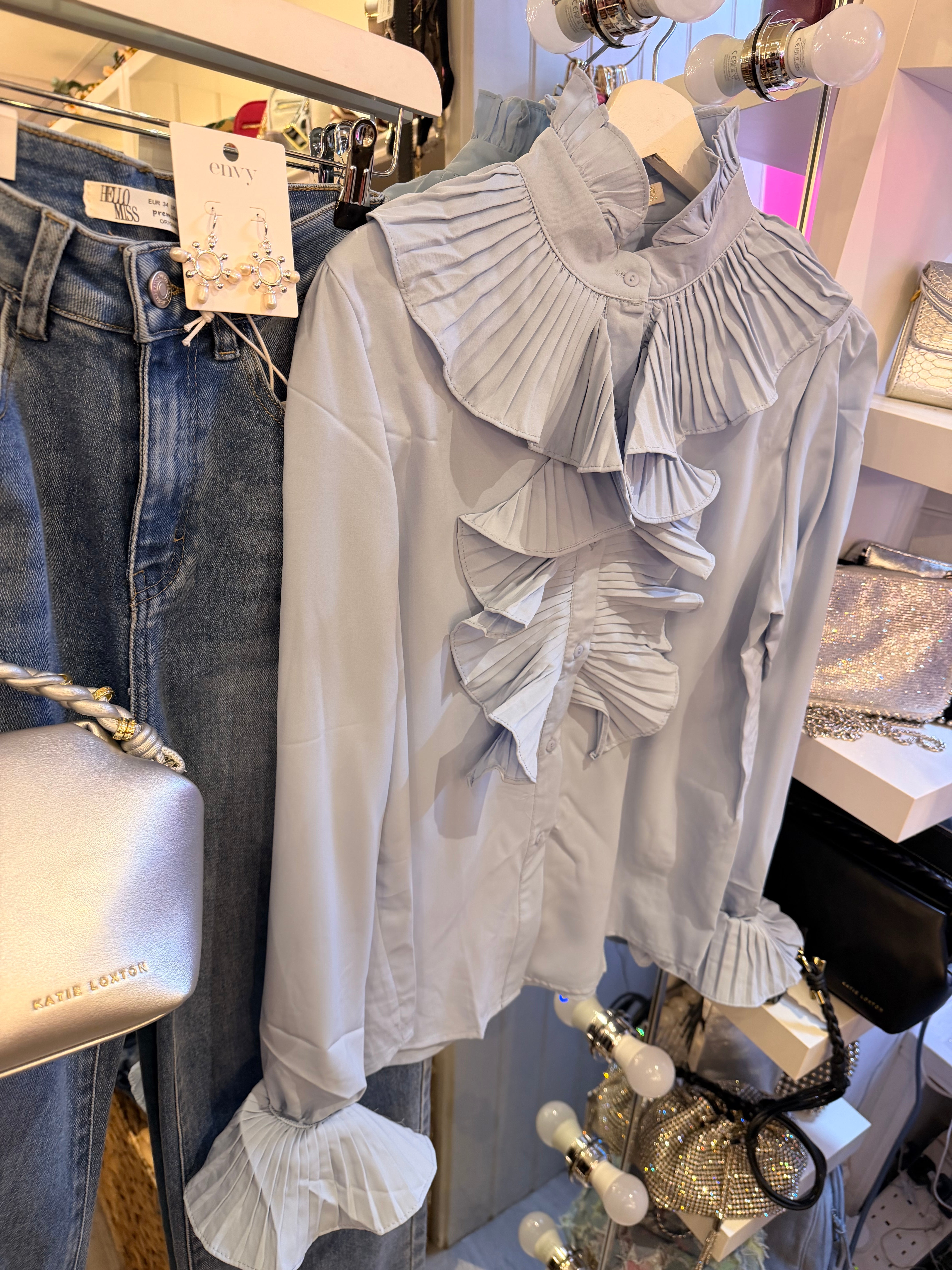 Pastel ruffle sleeve blouse