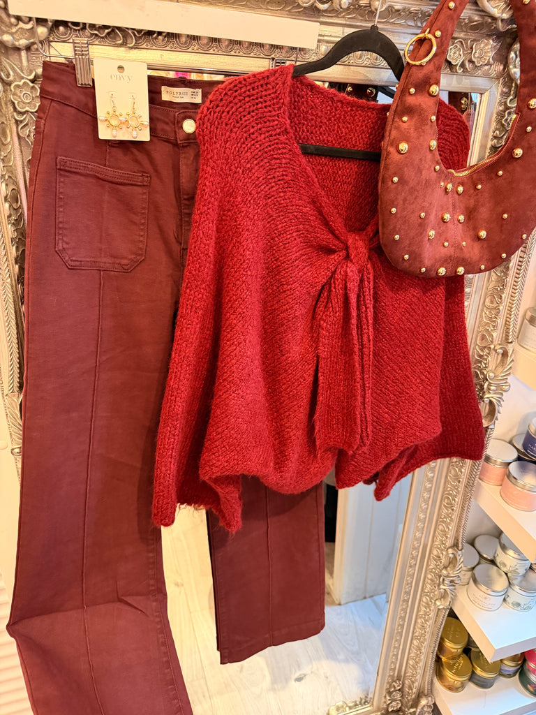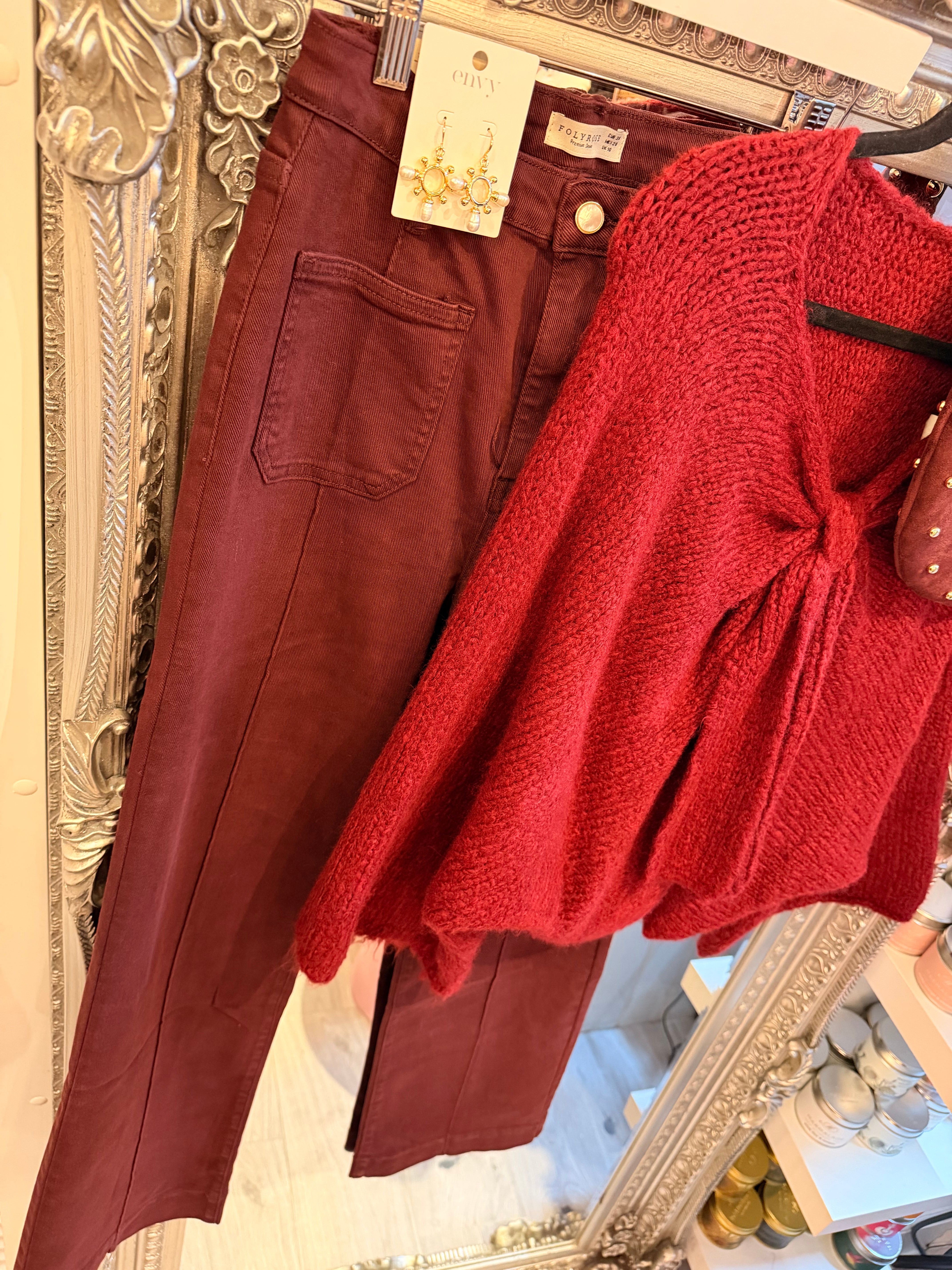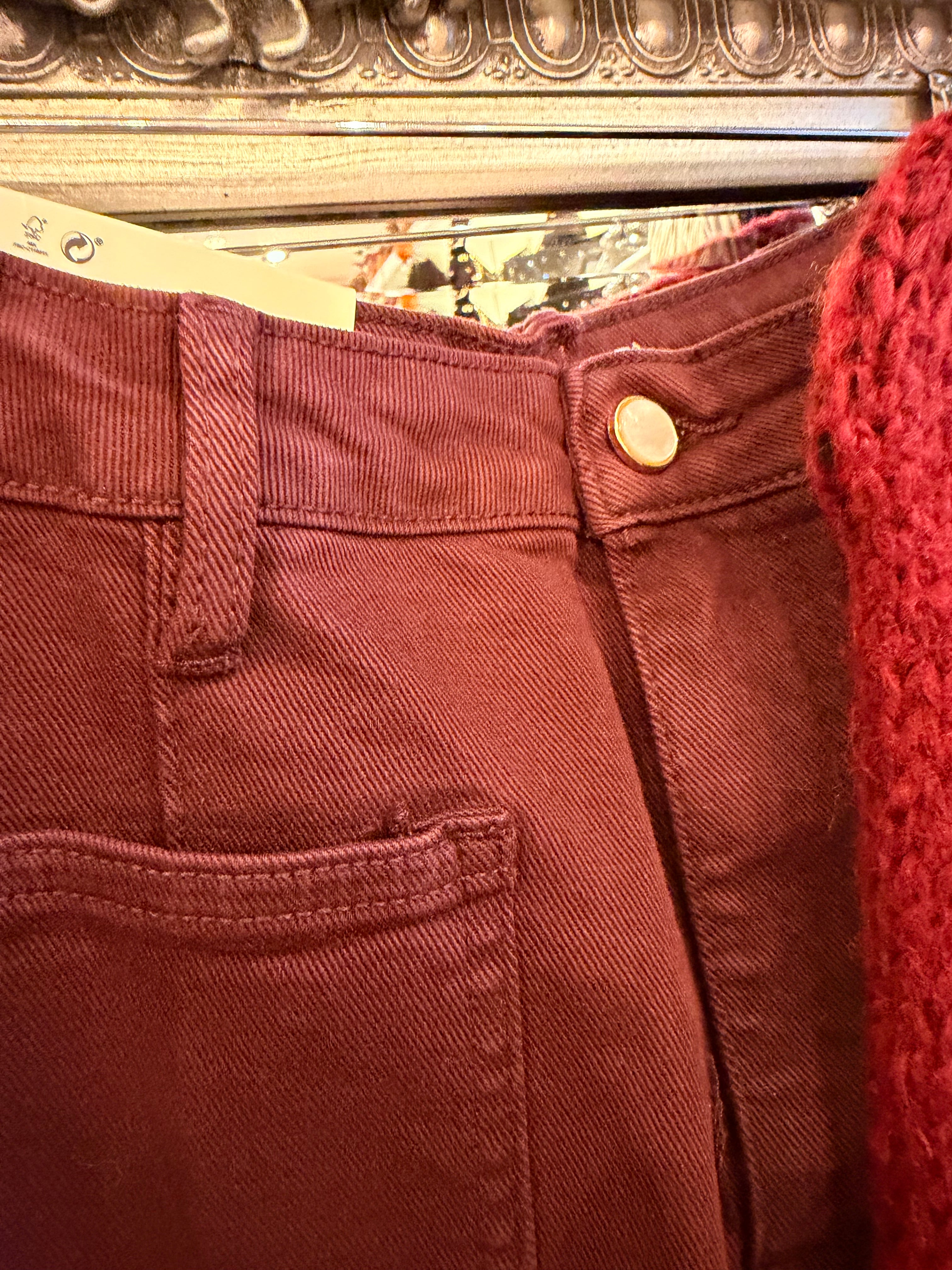 Burgundy stretch jeans - Size 6 is backordered and will ship as soon as it is back in stock.